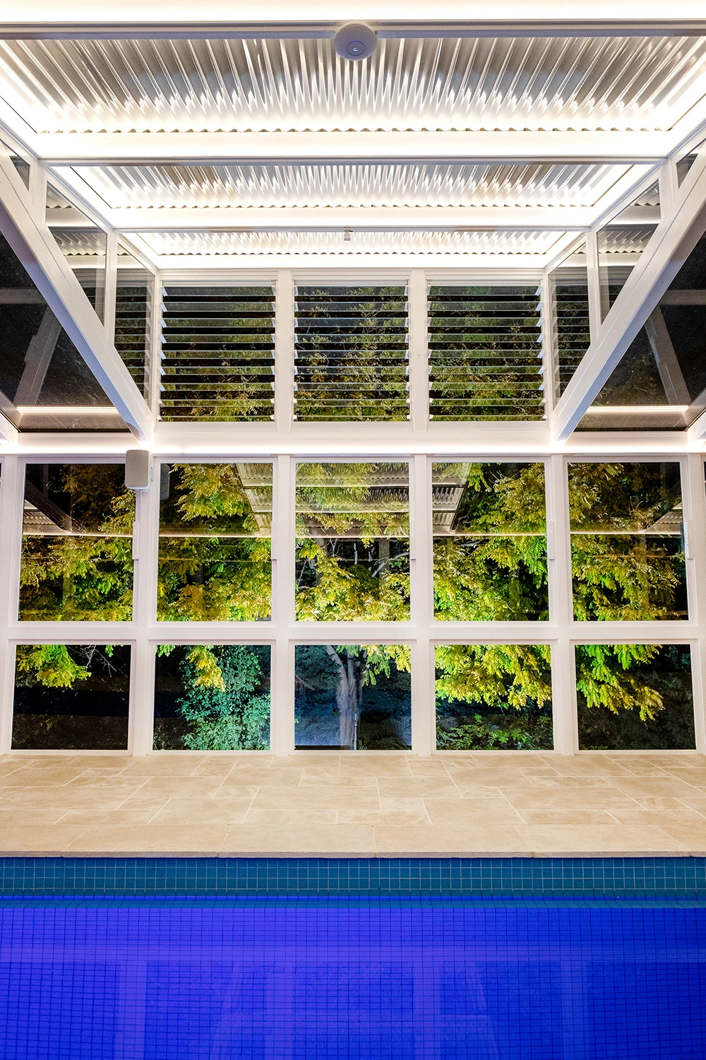 This stunning private residence in the Adelaide Hills features a 25m lap pool located within a custom built enclosure. Built by Liink group, the enclosure features extensive use of glazing to maximise light and vision to the immaculate surrounding gardens and hills landscapes.