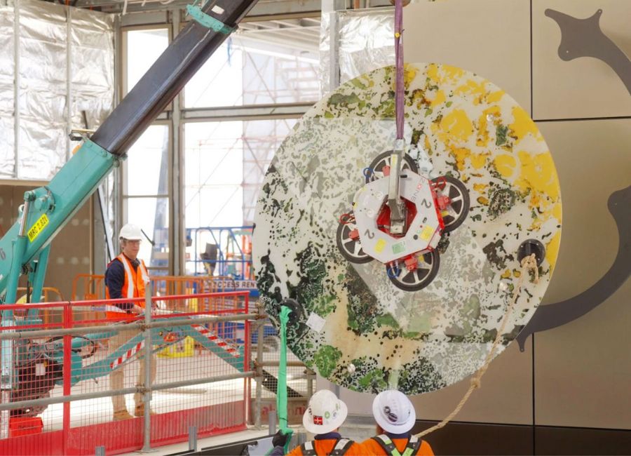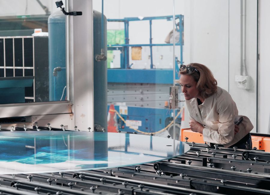 Large-scale public artworks are always complex, particularly in balancing creative vision with precision engineering, fabrication, and community expectations. The Moon Over Ocean; Land Under Sun glass commission for Metronet’s Alkimos Station was both a highlight and a challenge. It required translating a conceptual narrative about land and sea into durable architectural glass while meeting rigorous safety standards.